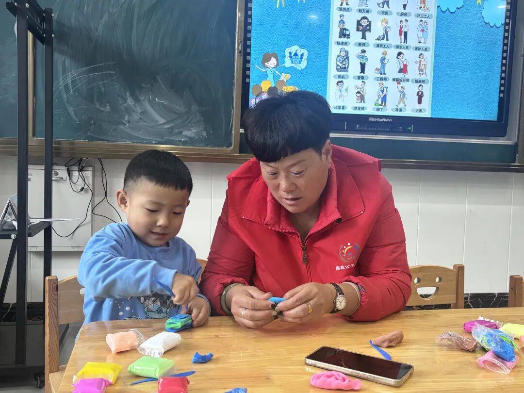 随后,来自正阳县第一实验学校的老师和正阳县君義公益联合会的志愿者们,带领孩子们进入手工创作环节。孩子们领取五颜六色的橡皮泥后,在志愿者的耐心指导下,开始认真塑造自己心中的职业形象。一双双小手灵活地捏、揉、搓、按,不一会儿,一个个充满童趣的职业形象便栩栩如生地呈现出来。