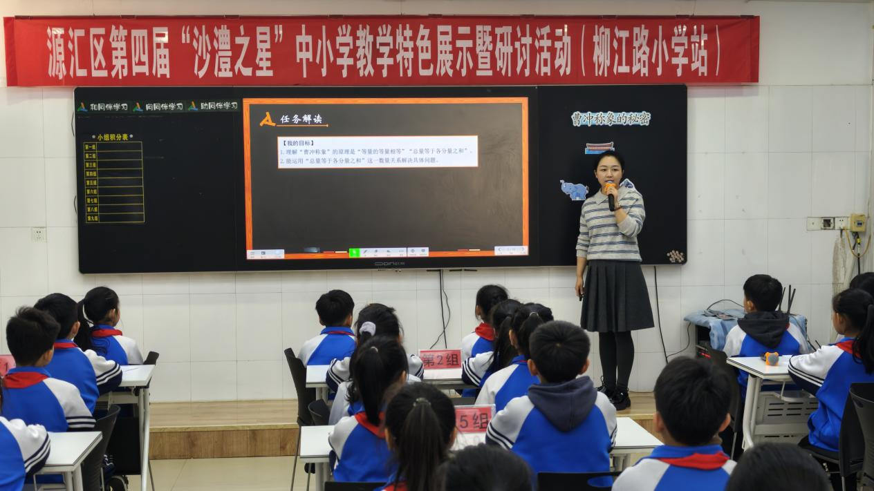 在三年级数学课《曹冲称象》上,该校教师张恒引导学生分组讨论、动手实践,在探究中理解等量代换的数学思想;四年级语文课《王戎不取道旁李》中,该校教师殷雯雯组织学生合作分析文本、分享 见解,让传统文化学习变得生动有趣。两节展示课不仅夯实了学生的学科素养,更有效培养了孩子们的沟通能力、责任意识与团队精神,生动诠释了“在社会化中学习,在学习中成长”的教育理念。