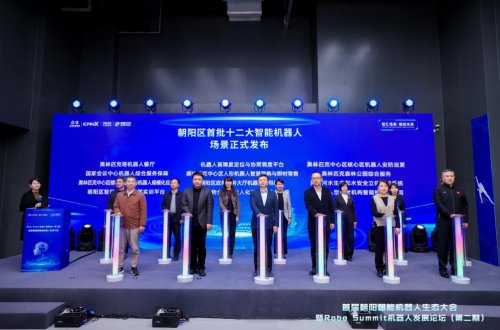 首批12个项目分别为:奥林匹克塔机器人餐厅、机器人高精度定位与协同调度平台、奥林匹克中心区核心区机器人安防巡更、国家会议中心机器人综合服务保障、奥林匹克中心区人形机器人智慧导购与即时零售、奥林匹克森林公园综合服务、奥林匹克中心区楼宇商场服务机器人规模化应用、朝阳区政务服务大厅机器人引导服务、亮马河水生态和水安全立体感知系统、朝阳区智能机器人教学实训平台、医疗废物全流程无人化处理机器人系统、社区嵌入型养老机构智能机器人应用。娄毅翔与12个场景方代表共同发布上述场景。