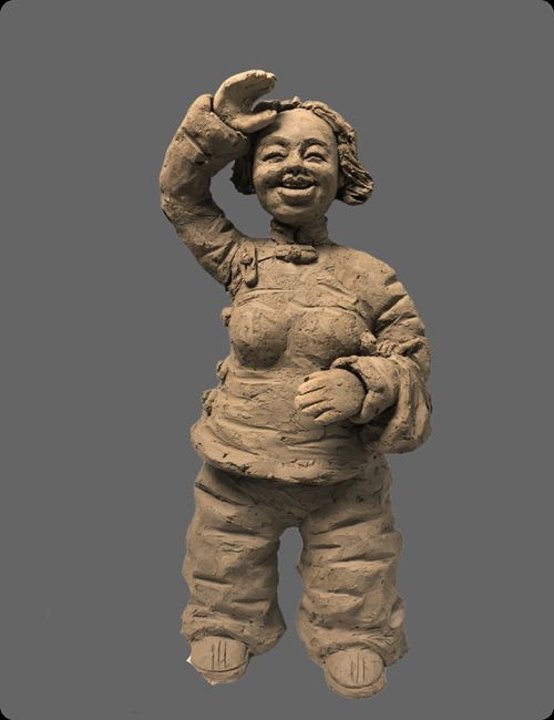 其现场用时20分钟捏制一件泥塑作品《回娘家》,表现的是:一位豫东大嫂回娘家的情景,她左臂挎着兜单,右手拭去额头上的汗水,作品高度39厘米。 村民李大妈仔细端详着张玉萍刚刚捏好的作品《回娘家》,笑呵呵地说“捏的真像,我年轻的时候回娘家就是像作品里的穿戴那样,那时候生活条件艰苦,穿的是粗布衣,上身穿偏襟袄、系的盘扣。”