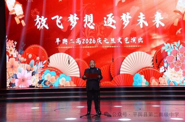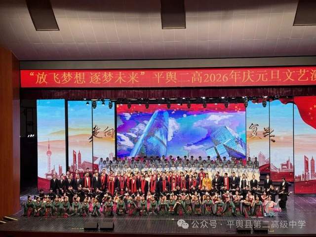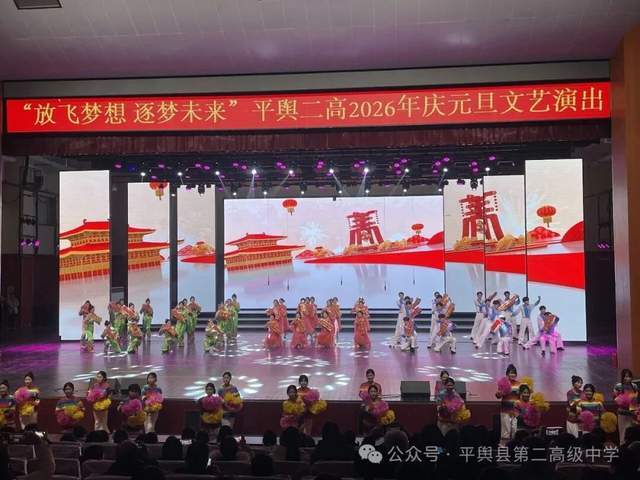 踏着时光的节拍,我们挥别满载荣光的2025年;伴着冬日的暖阳,我们喜迎充满希望的2026年。2025年12月30日下午2:00,平舆二高“放飞梦想,逐梦未来”主题文艺汇演在县文化艺术中心隆重举行,全校师生欢聚一堂,共赴这场洋溢着青春活力的视听盛宴。本场汇演由二年级播音主持班樊俊磊、郭宇飞、贾陈强、张芷悦四位同学联袂主持。