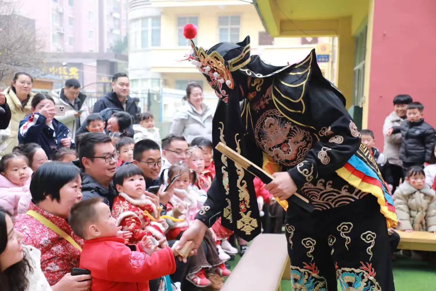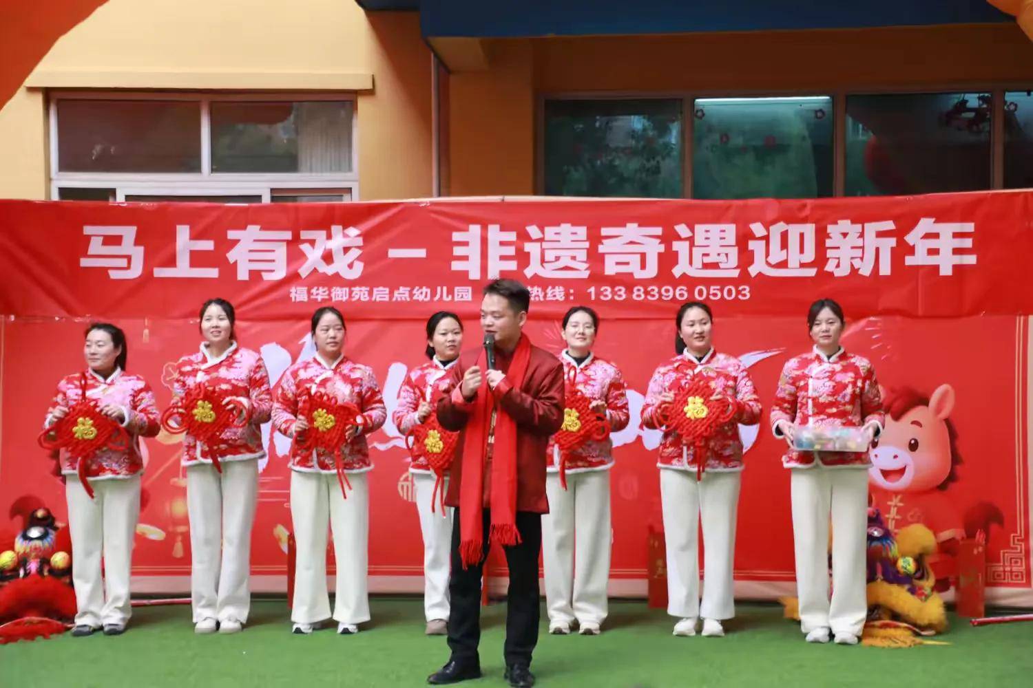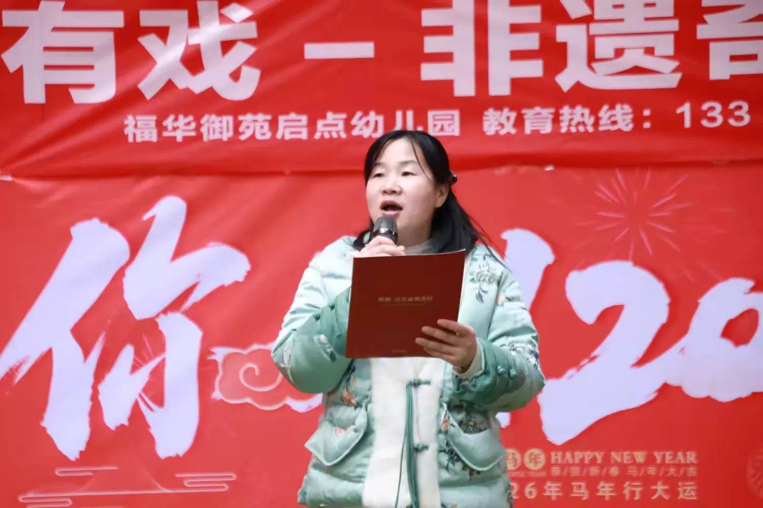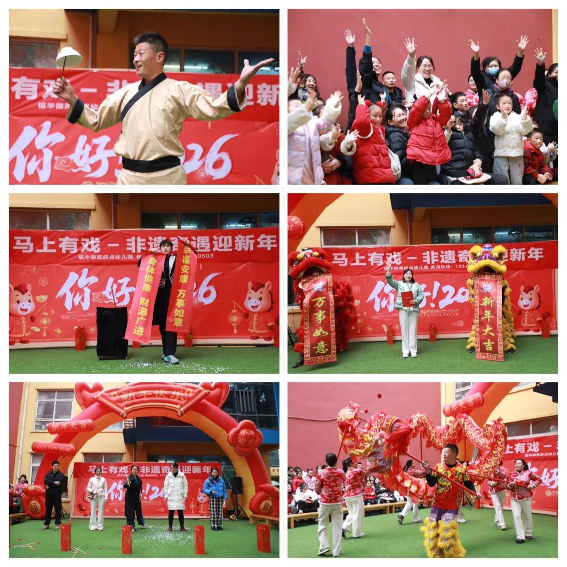 锣鼓喧天辞旧岁,非遗奇遇迎新年。为让孩子们在欢乐氛围中感受中华优秀传统文化魅力,度过一个意义非凡的元旦佳节,2025年12月30日下午,福华御苑启点幼儿园以“马上有戏 非遗奇遇迎新年”为主题,精心策划了一场集非遗展演、趣味互动、传统文化体验于一体的元旦主题活动。孩子们身着喜庆服饰,与老师、家长一同沉浸在辞旧迎新的欢乐海洋中,在欢声笑语里开启新一年的美好篇章。