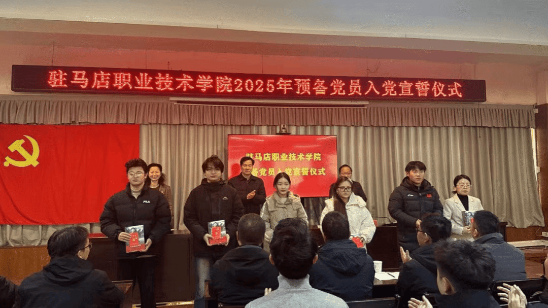 为进一步加强对新发展党员的党性教育,强化新发展党员党性修养,筑牢理想信念根基,驻马店职业技术学院于12月26日上午在综合楼第一会议室开展了2025年预备党员入党宣誓仪式。党委书记苏新留,党委委员、纪委书记邵雪峰,组织部部长高琳、各基层党总支书记,新发展预备党员,入党积极分子代表参会。会议由组织部部长高琳主持。