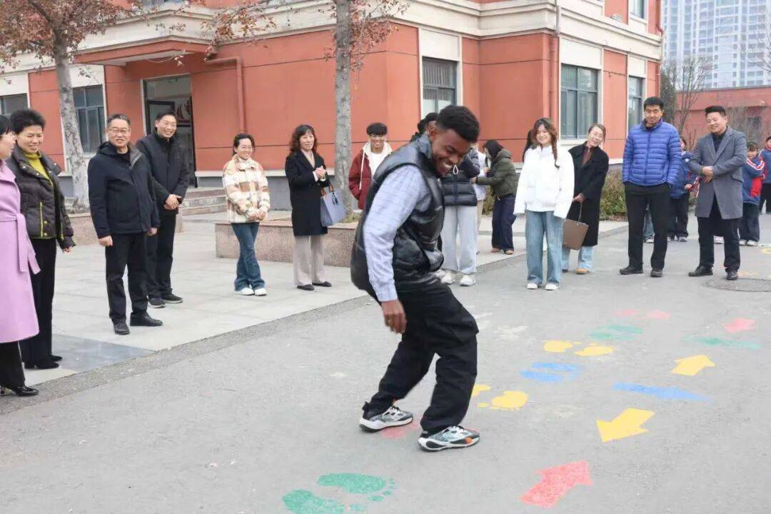 走进驻马店市第五十九小学,黄淮学院师生代表便被校园内的劳动实践基地和充满童趣的活动区域所吸引,优美雅致的校园环境令人印象深刻。恰逢课间,看到孩子们在操场上进行踢足球、跳绳、丢沙包等活动,师生代表主动融入其中,与孩子们手拉手互动。欢快的笑声回荡在校园里,迅速拉近了彼此的距离,也为后续交流营造了轻松融洽的氛围。
