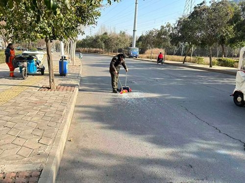 玻璃碎片挡路隐患大 郑州市上街巡防及时清理保畅通