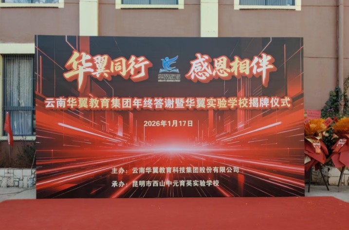 中国都市报道网(记者郭进财)2026 年 1 月 17 日,冬日的昆明,阳光温暖而柔和,洒在昆明市西山华翼实验学校的每一寸土地上,为这所校园增添了几分喜庆。在这美好的日子里,云南华翼教育集团年终答谢暨华翼实验学校揭牌仪式在这里盛大举行。