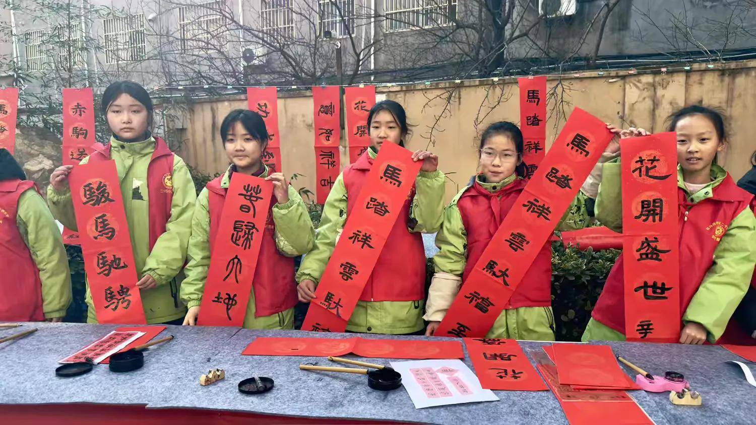 活动现场暖意融融,红纸铺展、墨香萦绕,驻马店市第二十四小学的学生“小书法家”们齐聚案前,凝神运笔、挥毫泼墨,一笔一划尽显扎实的书法功底,一撇一捺饱含对新春的美好祈愿。从经典大气的通用吉祥联,到贴近生活的趣味民俗联,再到方正饱满、福气满满的福字,师生们依照居民需求现场创作,将平安、喜乐、顺遂、安康等美好期许,尽数凝于笔端、落于红纸之上,一幅幅笔法精湛、寓意吉祥的书法作品接连呈现,引得现场居民连连称赞。