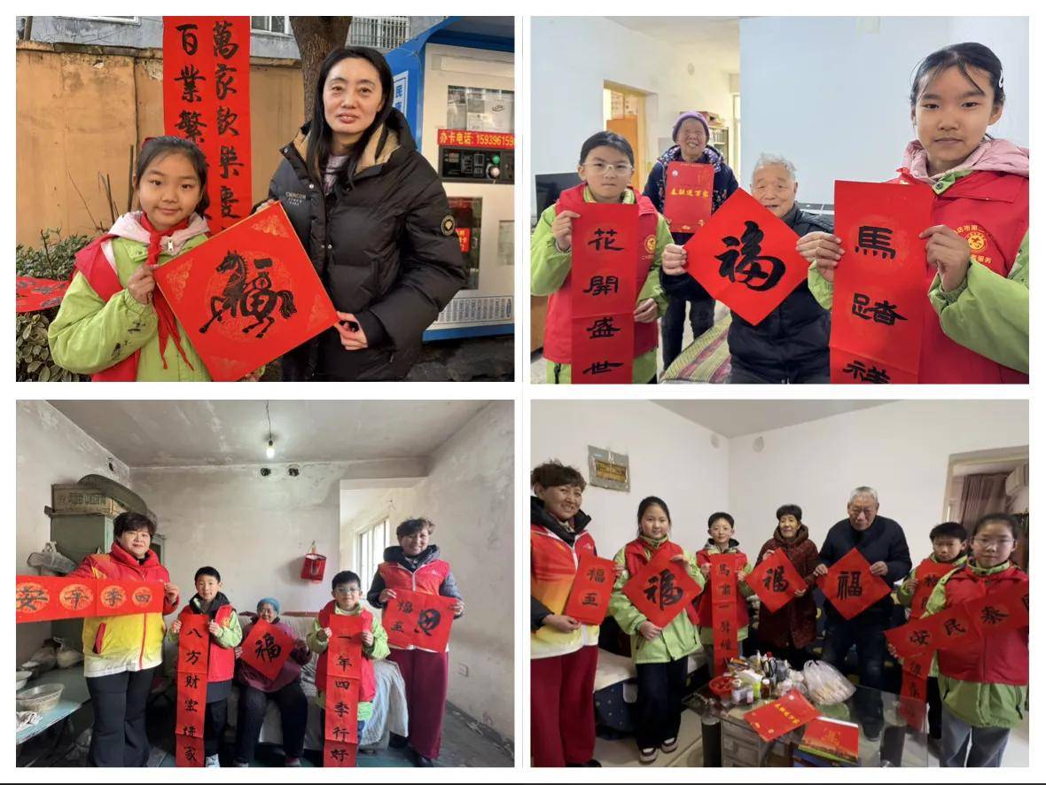 天中义工志愿者分工协作、细致服务,引导居民有序挑选春联,完成铺纸、研墨、晾晒等工作,及时将春联福字送到居民手中。除了现场书写赠送,第二十四小学学生代表还与天中义工代表们一同入户,为高龄老人、困难家庭送春联、送问候,与居民亲切交流,把暖心祝福与新春关怀送到家中,让特殊群体也感受到节日的温暖与关爱。