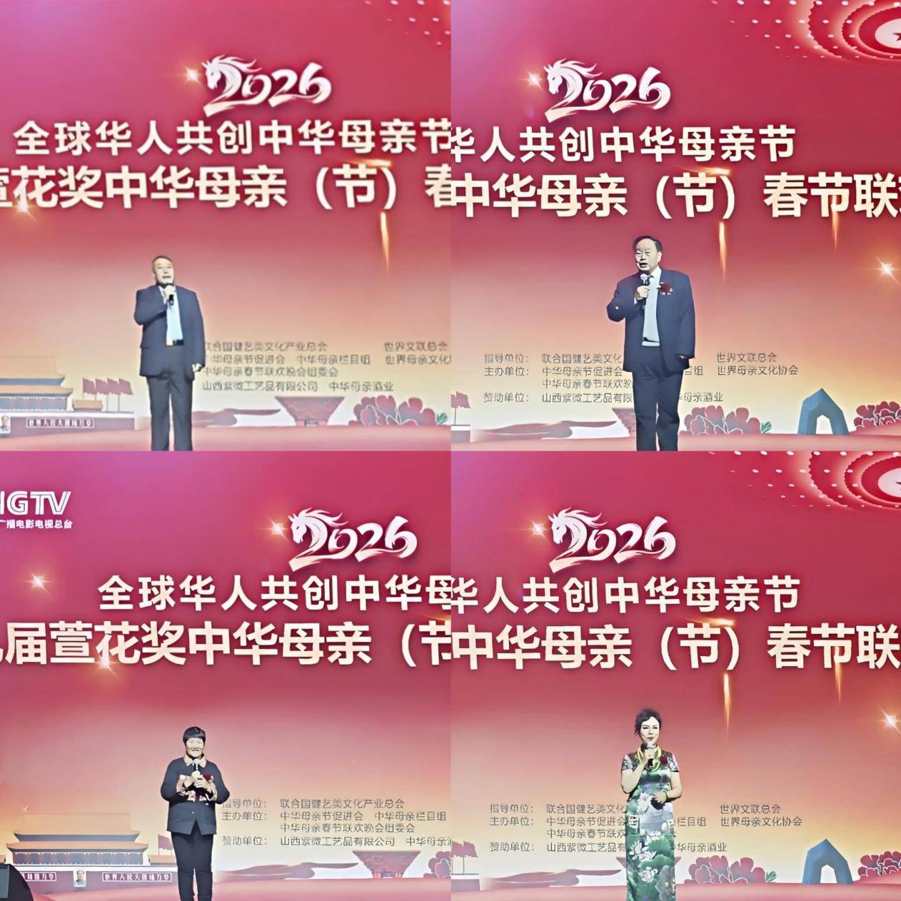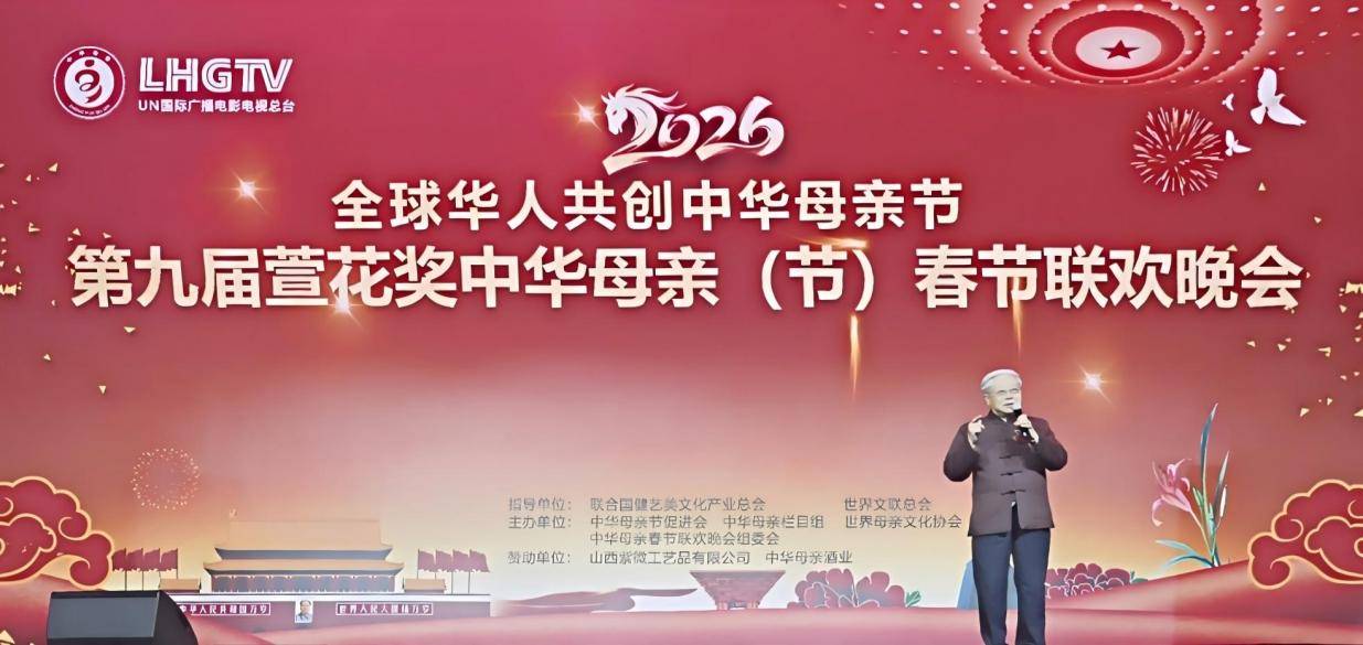 春潮涌动处,文脉续华章。2026年新春之际,备受瞩目的全球华人共创中华母亲节第九届萱花奖中华母亲(节)春节联欢晚会在北京星光电视节目制作基地圆满落幕。作为深耕九年的母亲文化盛事,本届晚会由联合国健艺美文化产业总会、世界文联总会指导,中华母亲节促进会、中华母亲栏目组、中华母亲春节联欢晚会组委会等联合主办,萱花文化传播(北京)有限公司承办,以“中华母亲•孝行天下”为初心,汇聚全国50余支优秀艺术团队与实力唱将,用舞蹈、歌唱、朗诵、非遗展示等多元艺术形式,谱写了一曲致敬母爱、礼赞家国的时代赞歌。出席晚会的领导有:全国政协第七届、第八届、第九届、第十届连续四届全国政协委员,中华母亲节促进会创会会长李汉秋先生,世界华人精英联合会主席、感动中国公益杰出人物,第八届、第九届中华母亲春晚全球主席管必红先生,世界文联总会创会主席、两会重点推荐艺术家谭邦兰女士,北京青年政治学院教授,中华母亲节促进会副会长李素菊女士,北京青年政治学院教授,中华母亲节促进会副会长王新宏先生,中华母亲联合创始人、中华母亲中国区主席石春莲女士,天门市江汉学校总校长刘振华先生,北京市政协委员、民盟北京市委秘书长严为和中国老龄协会老年人才信息中心老年人才库办公室负责人卓德海先生,辽宁省阜新市老年护理院院长张进利先生,亚圣孟子第77代后裔,中华母亲节促进会理事孟德伟先生,中共党员,书香中国新时代杰出人物推选活动组委会、执行主任苏文先生,中华母亲(节)春晚创始人、世界华人母亲春晚创始人、全球总导演齐方忠先生等。
