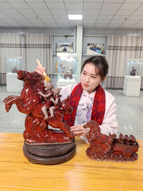张玉萍创作陶瓷艺术《一马当先》喜迎新春