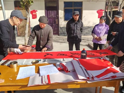 中国都市报道河南讯(程传忠 报道 通讯员:王景梅)为弘扬传统文化、拉近党群关系,环翠峪村村委会联合荥阳市公安局驻村工作队,开展“写春联、送祝福、迎新春”惠民活动,把新春暖意与平安祝福送到村民家门口。