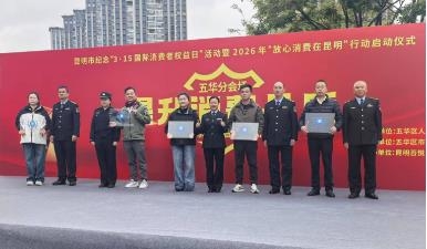 中国都市报道网讯(记者潘友菊)3月13日,五华区市场监督管理局联合五华公安分局、五华区司法局、五华区文旅局等部门,在五华区吾悦广场隆重举行“3•15国际消费者权益日”暨2026年“放心消费在昆明”行动启动仪式。活动以“提升消费品质,共建诚信五华”为抓手,旨在通过标杆引领、共治共享,全面优化区域消费环境,提振消费信心。