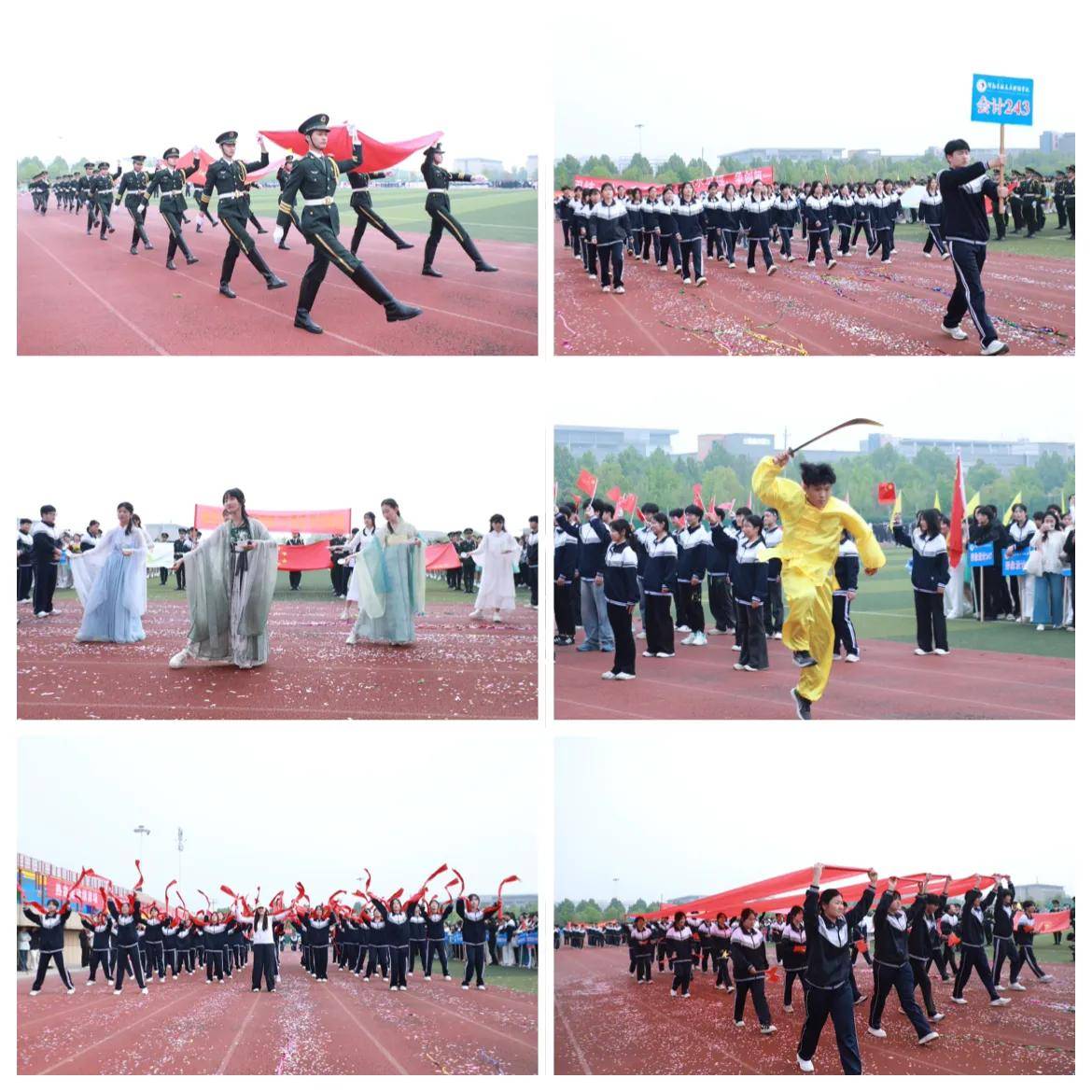 党委书记李金浩宣布:“河南省驻马店财经学校2026年春季运动会开幕!”话音落下,掌声雷动,全场欢呼,开幕式最后,各班级按秩序有序退场,由校团委组织的文体表演正式开始。同学们带来了活力四射的舞蹈、刚劲有力的武术等精彩节目,用青春的律动展现着阳光自信的精神面貌,为春日的校园增添了一抹亮色。