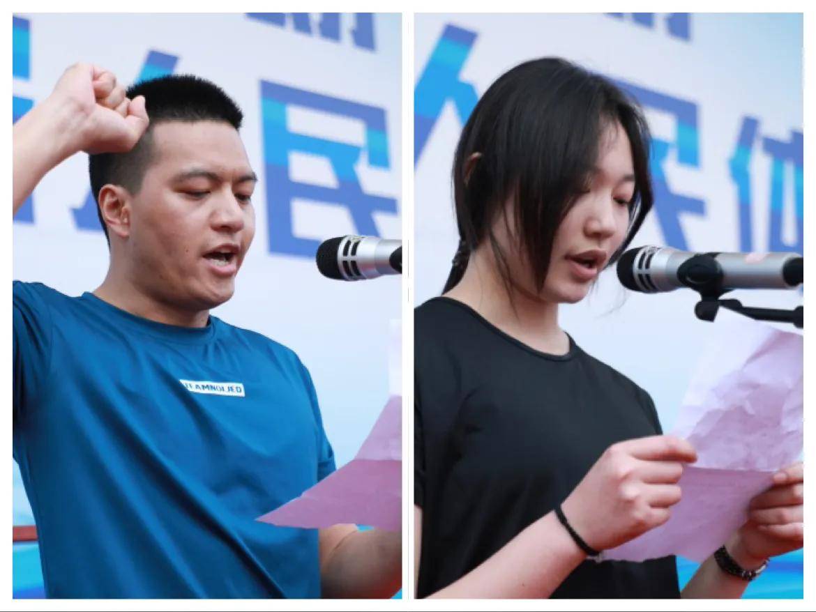 裁判员代表刘东、运动员代表网络高考242班王可欣分别宣誓。总裁判长王立新宣读了竞赛纪律,对赛事组织、赛场秩序、安全保障等方面提出了明确要求。