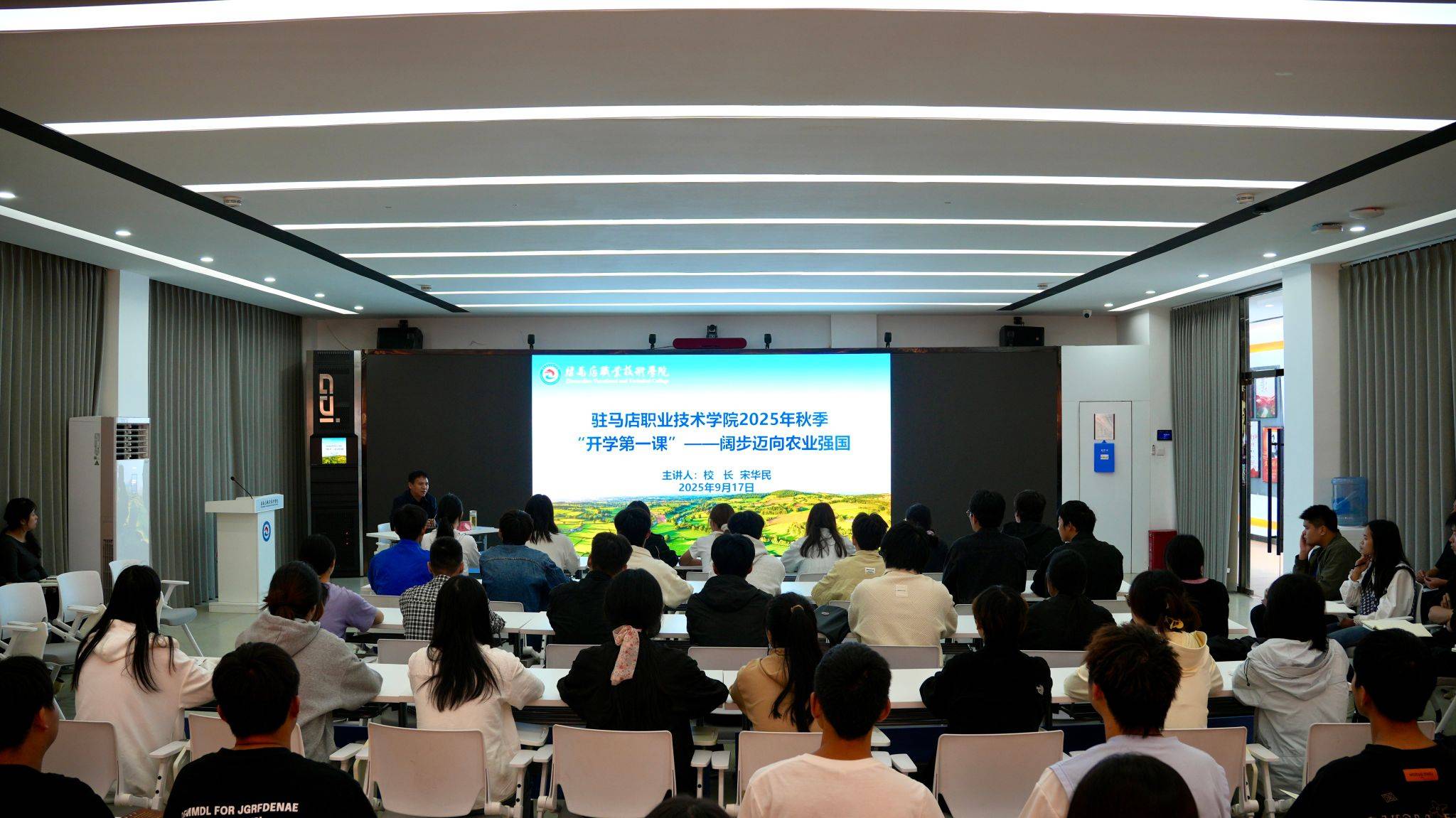 金秋九月,新学期扬帆启航。9月17日,驻马店职业技术学院党委副书记、校长宋华民以《阔步迈向农业强国》为题,为机电工程学院师生带来一堂兼具思想深度与实践温度的开学第一课