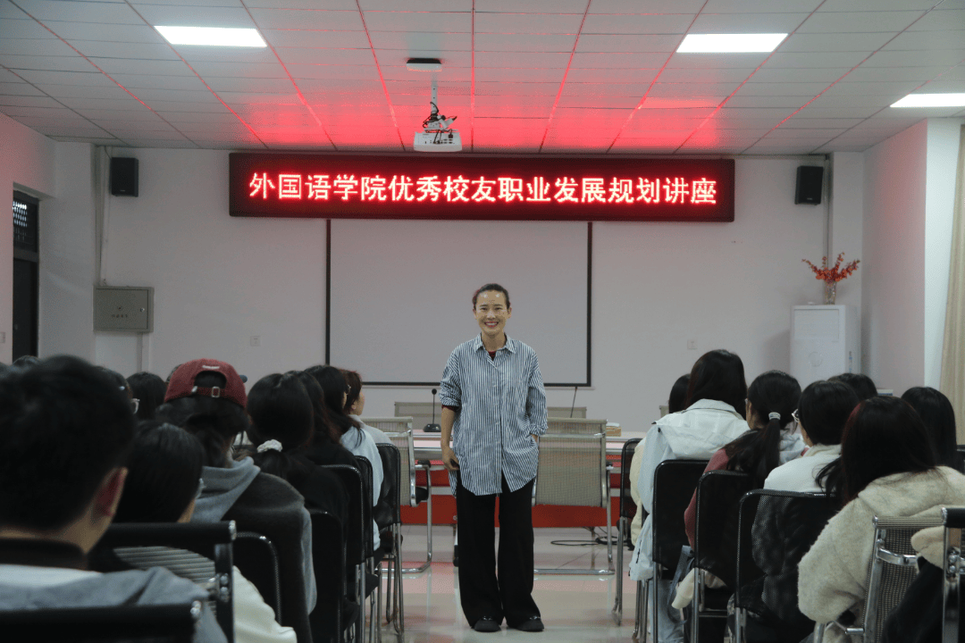 2025年10月29日,外国语学院在10号楼212教室举办优秀校友职业发展规划讲座,旨在破解新生入学初期的职业迷茫,帮助其明晰专业价值与发展路径,为大学阶段的学业规划与能力提升
