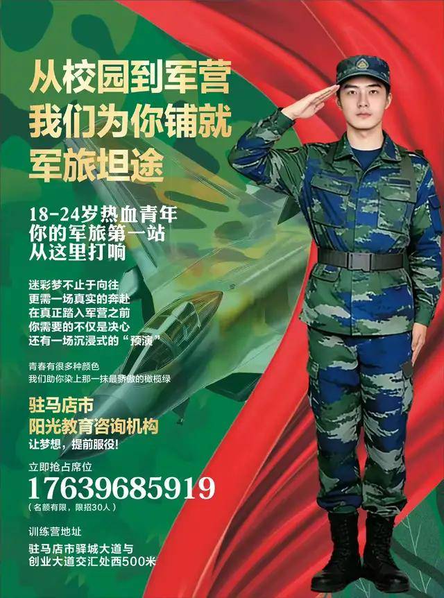 报名咨询:17639685919训练营地址:驻马店市驿城大道与创业大道交汇处西500米,名额有限,立即行动,让你的军旅之路,赢在起跑线上。