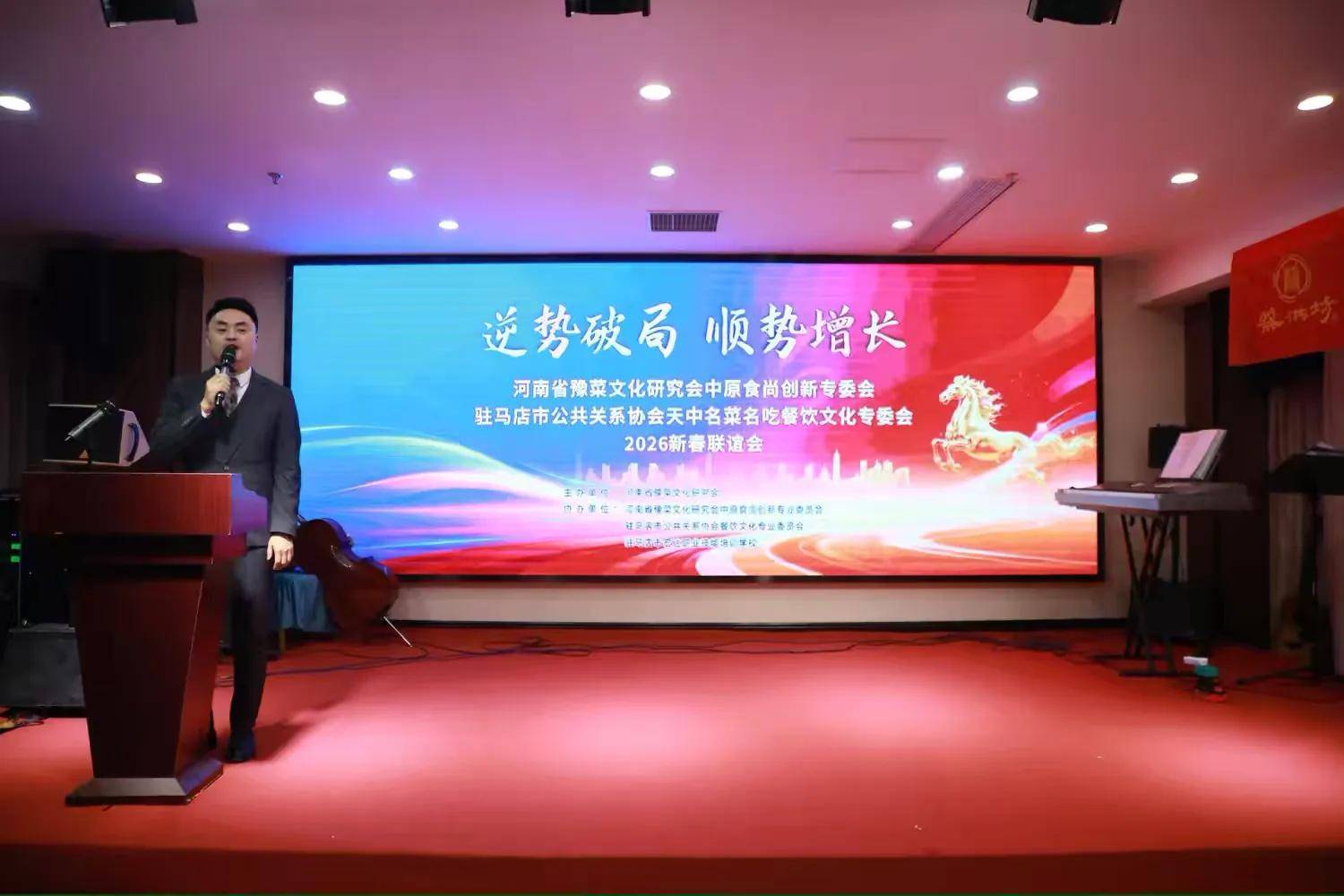 岁序更迭迎新春,凝心聚力谋发展。 1月22日,以“逆势破局 顺势增长”为主题的河南省豫菜文化研究会中原食尚创新专委会暨驻马店市公共关系协会天中名菜名吃餐饮文化专委会2026新春联谊会在驻马店翰林居酒店隆重举行。餐饮行业精英、豫菜人、美食爱好者及合作伙伴等各界嘉宾齐聚一堂,共话豫菜传承创新之道,共绘行业高质量发展蓝图。