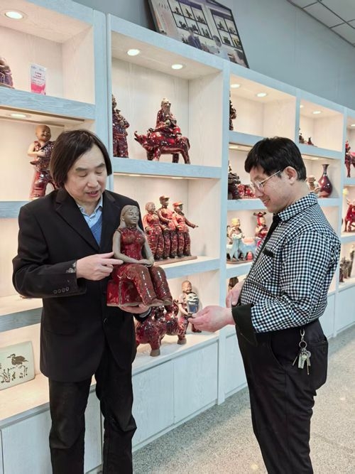 中国都市报道网河南讯(程传忠 报道)4月3日,《中国美术家》杂志副主编、郑州大学兼职教授、中国美术家协会会员于承恩和省美协会员、画家李金花一行来到位于郸城县产业集聚区的张振福丹钧泥塑艺术馆,进行艺术交流活动。