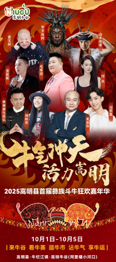 除了精彩的斗牛比赛,活动现场还将呈现一场丰富多彩的农耕与民俗文化盛宴。园区道路文化彩绘、农耕器具展示、牛体彩绘展演,以及舞龙舞狮、花灯戏、划旱船等民俗巡游,让游客沉浸在浓厚的文化氛围中。本土歌手毛家超的山歌互动展演、唐章勇与乐队的山水实景落日音乐会,以及特邀嘉宾山羊哥哥、罗罗拔四等艺术家的精彩表演,将为游客带来一场场视听盛宴。届时,本土演员夏嘉伟,网红晋文新、刘熙墨、杨丽萍&杨丽燕姐妹艺术空间将带领游客深入领略嵩明的民俗文化魅力。