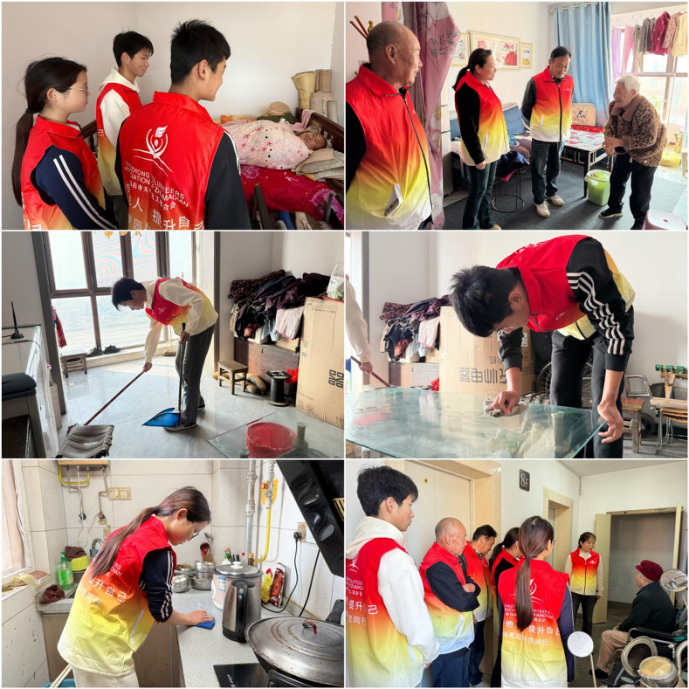 活动当天,天中义工团队和洛阳慈校学子带着满满的关怀和爱心,一户一户地敲开社区残障人士、困难家庭的家门。每到一处,他们都关心询问老人的身体和起居情况,悉心了解他们的困难和问题,鼓励他们坚定信心,放宽心态,早日渡过难关。在嘘寒问暖的同时,洛阳慈校学子还主动拿起扫帚和抹布,为行动不便的老人清扫地面、擦拭油污、清理卫生死角等。看着孩子们忙碌的身影,受助老人感动的对义工说道:“你们带着这些孩子来看我,我高兴还来不及,还帮我干活,我心里特别温暖!”