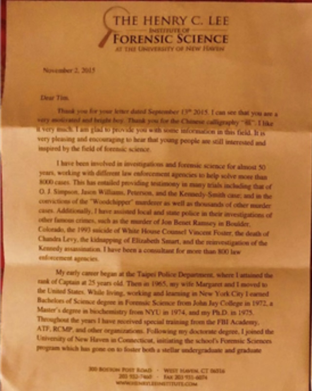 寥寥数语,重若千钧。对这位生于纽约的华裔少年而言,这不仅是偶像的回应,更是命运的启封。那封书信如暗夜星火,彻底笃定他的人生方向——考入李昌钰博士母校纽约大学,追随恩师足迹深耕刑事鉴识,以正义立身,以专业争光,不负家国,不负师望。从此,书信被奉为至宝,伴他走过无数晨昏,成为刻入骨髓的信仰。